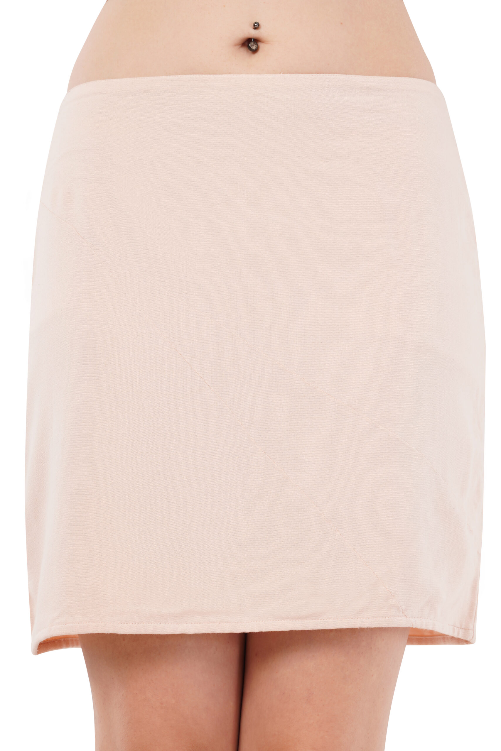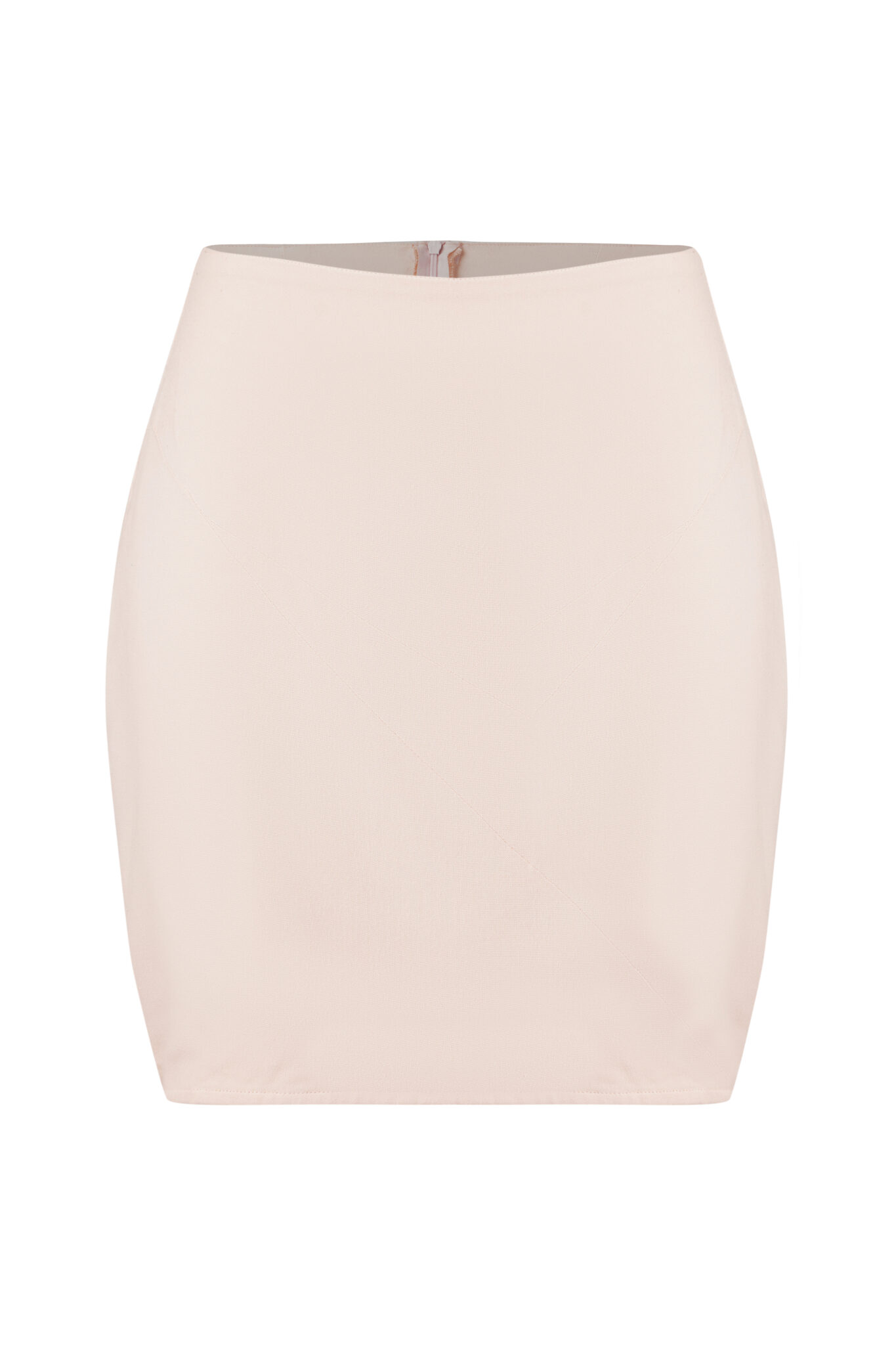 Essential, perfected. Pearl-toned mini with a diagonal line across , creating illusion of length, high waist that defines rather than constricts. Clean lines, no apologies. The knee-grazing length walks the line between sophisticated and modern—never severe, always intentional.