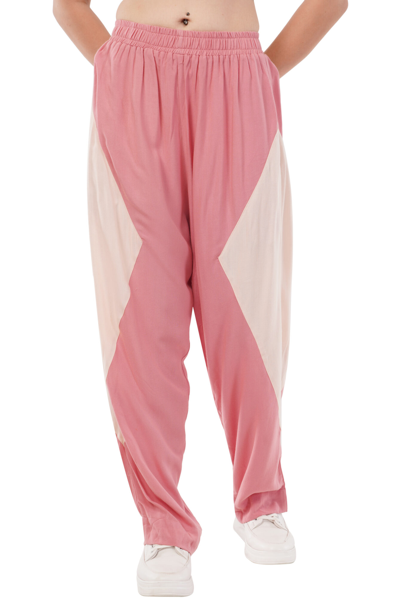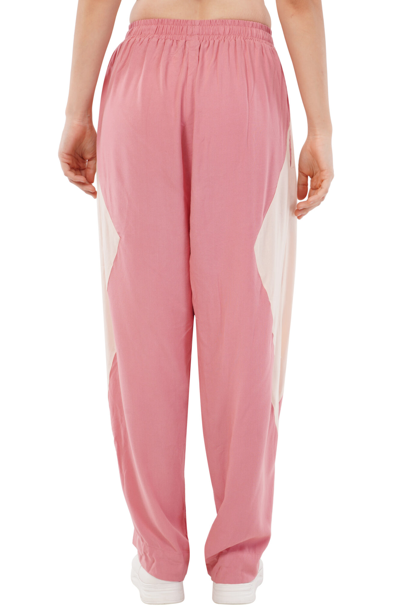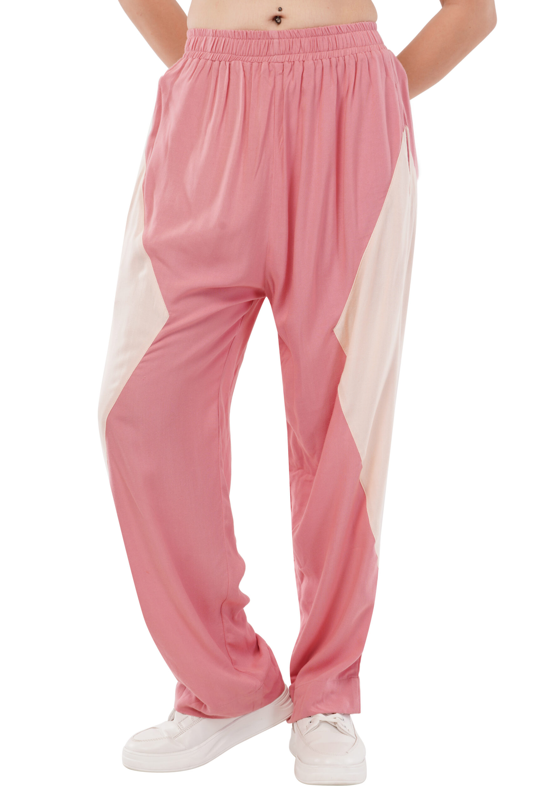 Where geometry meets grace, the Rosewood Symmetry Trousers redefine professional ease with an artist’s eye. Crafted in BAMYOR’s signature bamboo fabric, these wide-leg trousers bloom in a sophisticated dusty rose, elegantly bisected by clean ivory panels that trace dramatic diagonal lines down each leg—a study in balanced contrast and contemporary femininity. The high elasticated waistband whispers comfort against your skin while the generous silhouette flows with architectural precision, allowing unrestricted movement through boardroom presentations and creative brainstorms alike. Discreet side pockets offer practical luxury, understanding that the modern professional woman carries her world with quiet confidence.
